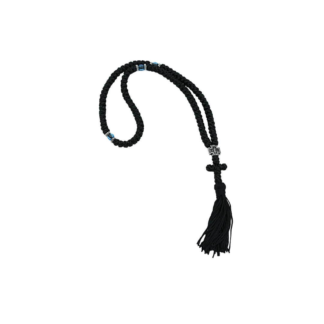 A traditional 100-knot prayer rope representing a staple in the Orthodox faith. Each knot is tied with the Jesus Prayer, inviting peace and spiritual focus in daily life.