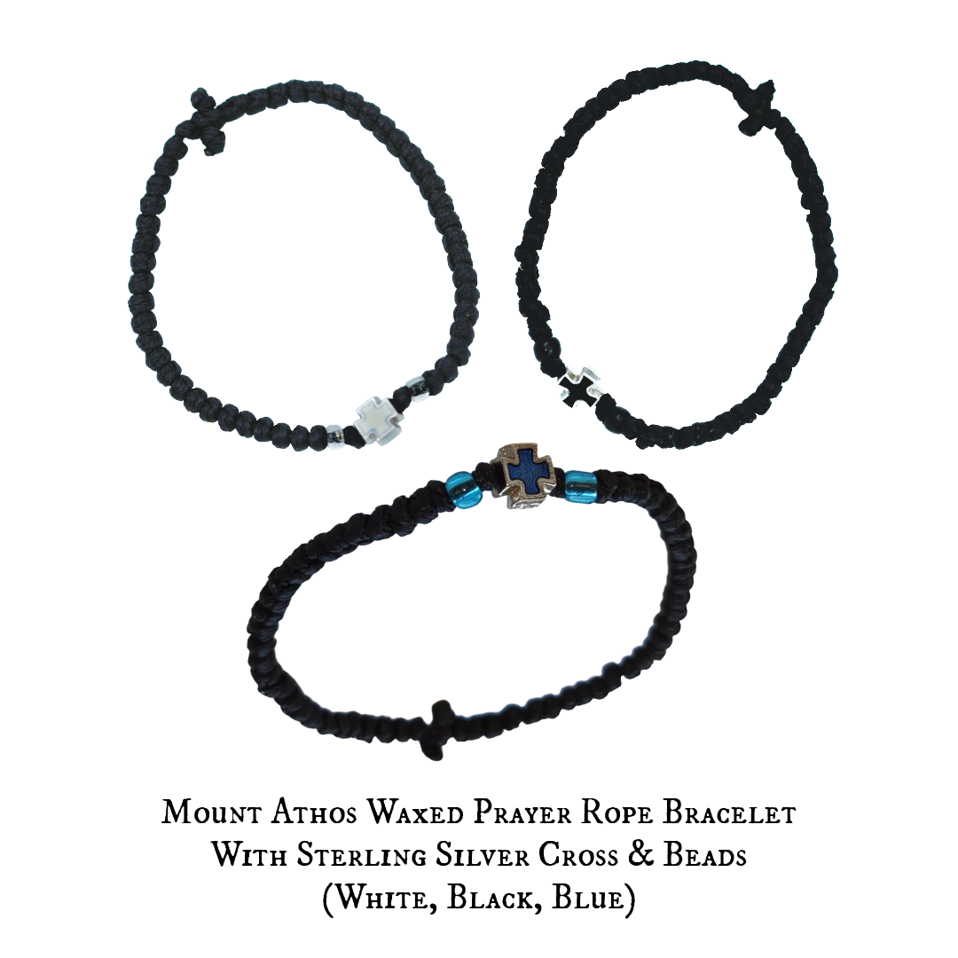 This traditional Orthodox prayer rope bracelet (komboskini) is handcrafted in Greece using durable cord and tied with the ancient prayer “Lord Jesus Christ, have mercy on me.”