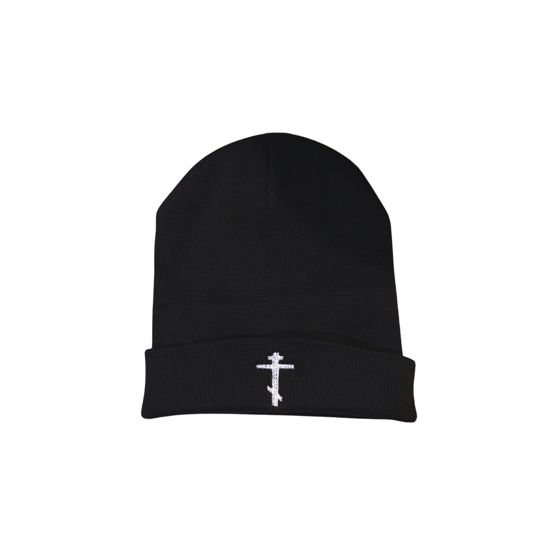 - Cuffed knit beanie with Orthodox Cross embroidery